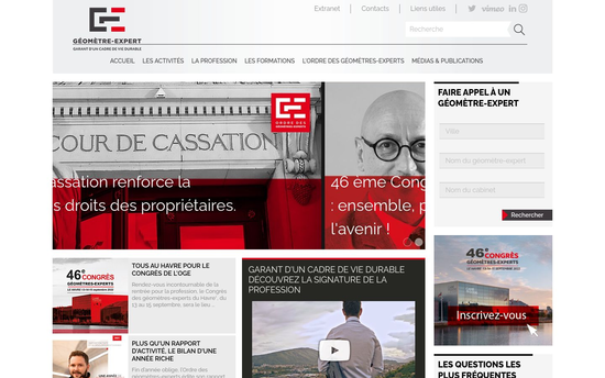 Page d'accueil du site internet du Conseil supérieur de l'Ordre des géomètresexperts